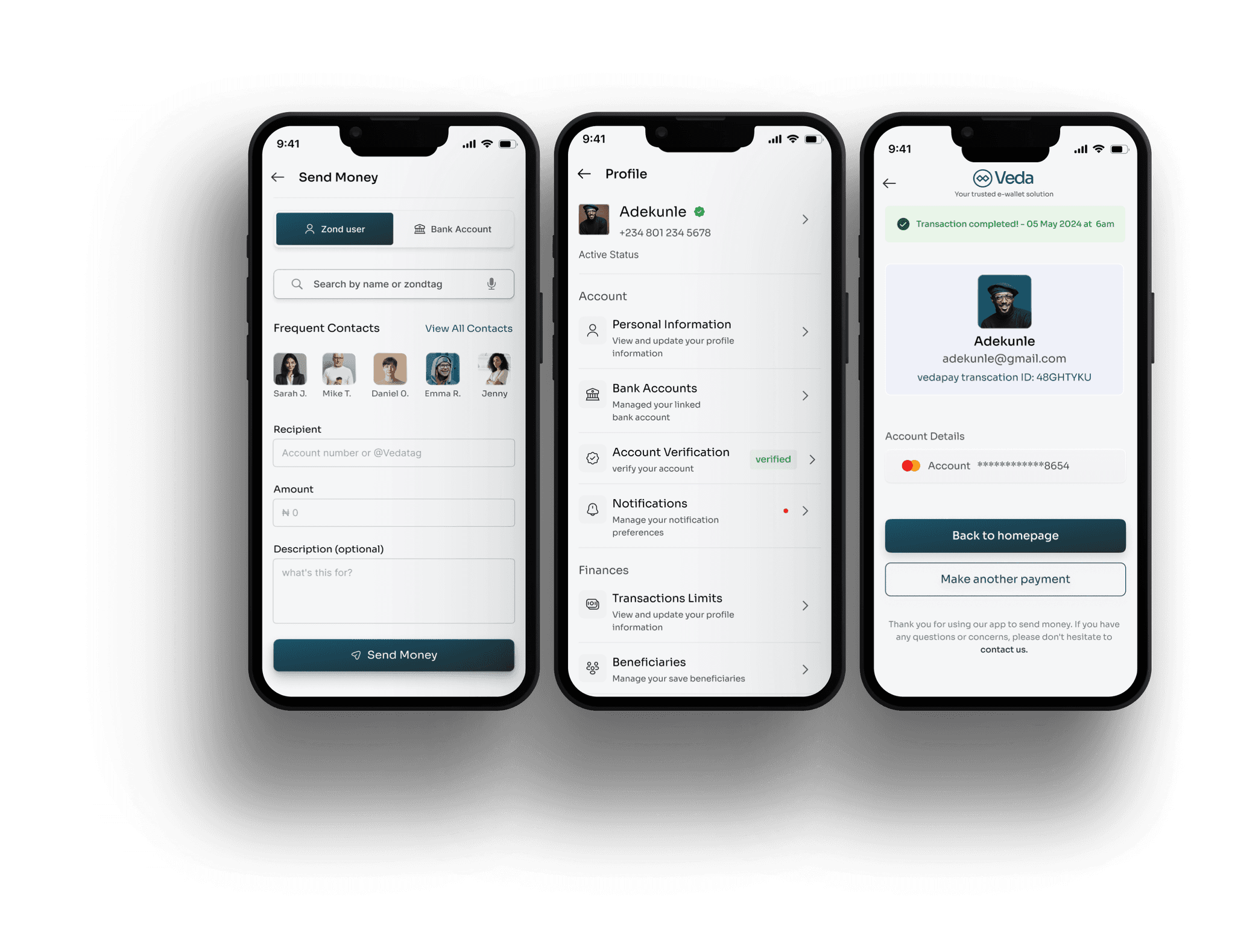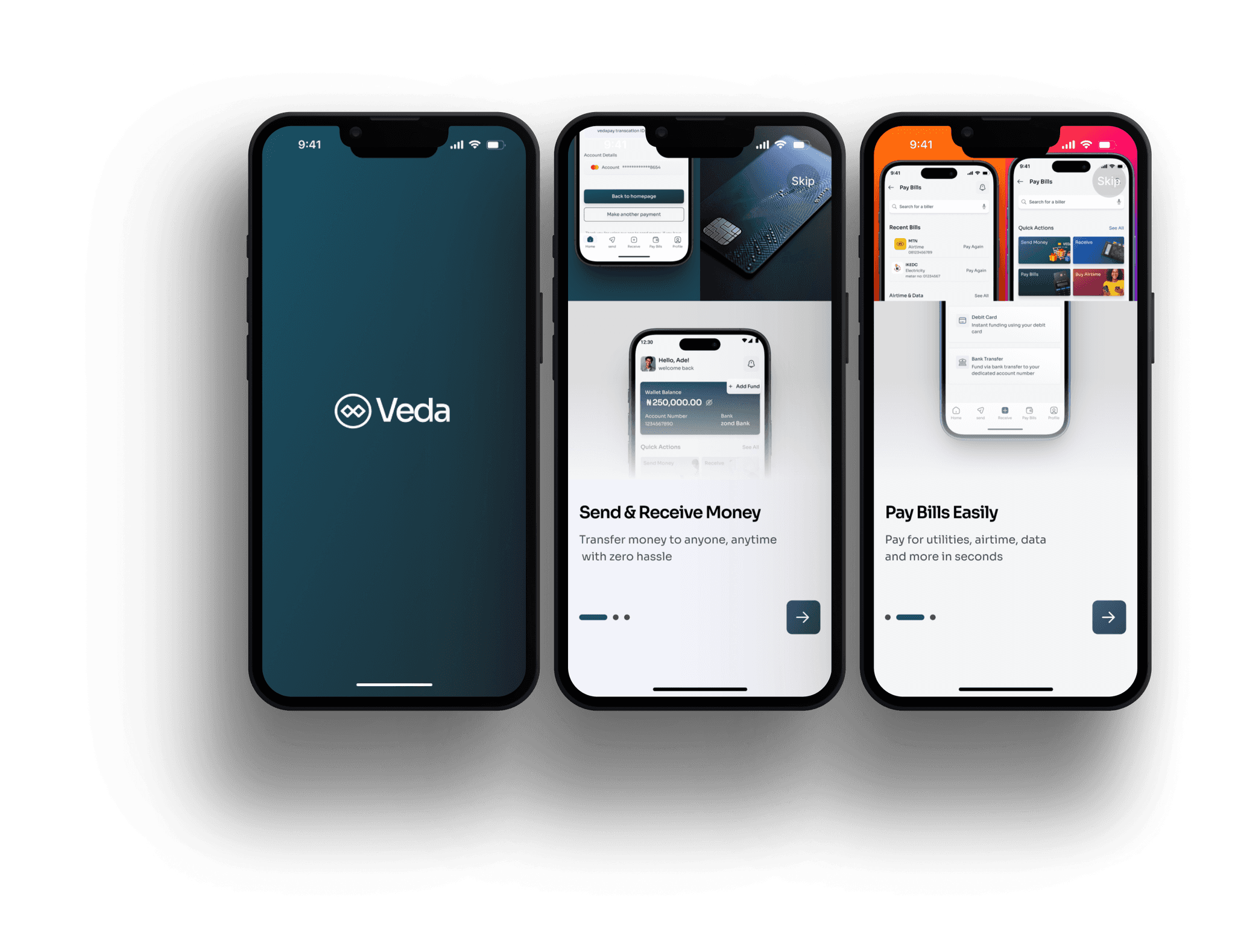 VEDA is a mobile-first E-wallet app that empowers users across Africa to manage money securely, swiftly, and conveniently. The app combines banking essentials, smart budgeting, and seamless transactions, all within an intuitive interface built for diverse tech users.