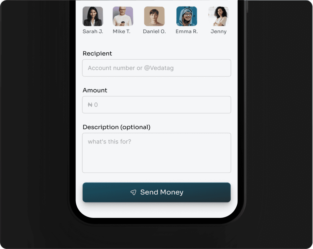 Veda enters the scene to fill this gap—bringing a friendly, modern, and secure financial solution to users who want simplicity without compromising trust.